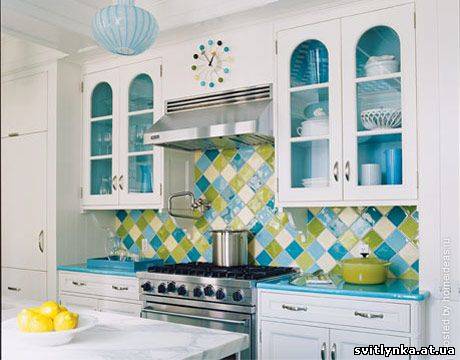 Кухня в бірюзових та білих тонах